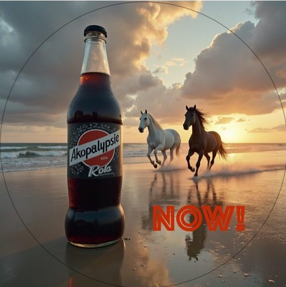 Katz’ Werk verwebt durch den Einsatz von KI, deren kalte, algorithmische Logik in einem scharfen Kontrast zur menschlichen Krise steht, die Künstlichkeit der Nostalgie mit der drängenden Realität der Gegenwart. „AKOPALYPSI COLA“ wird so zum dystopischen Manifest, das unsere Zeit zwischen der Illusion einer vergangen geglaubten Stabilität und der bitteren Realität eines drohenden Endes seziert.